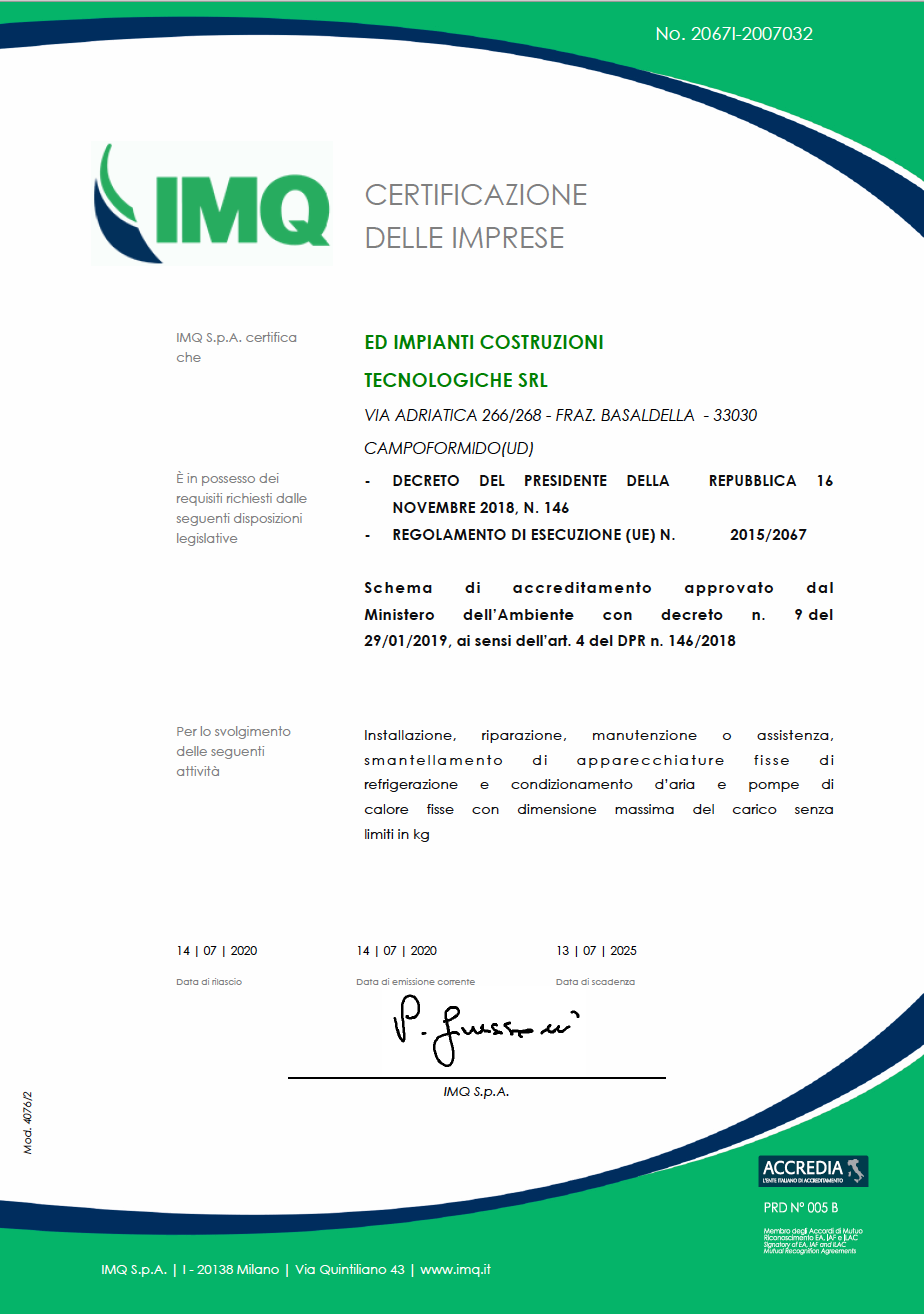 Appena concluso l’iter per l’ottenimento del certificato F-GAS.